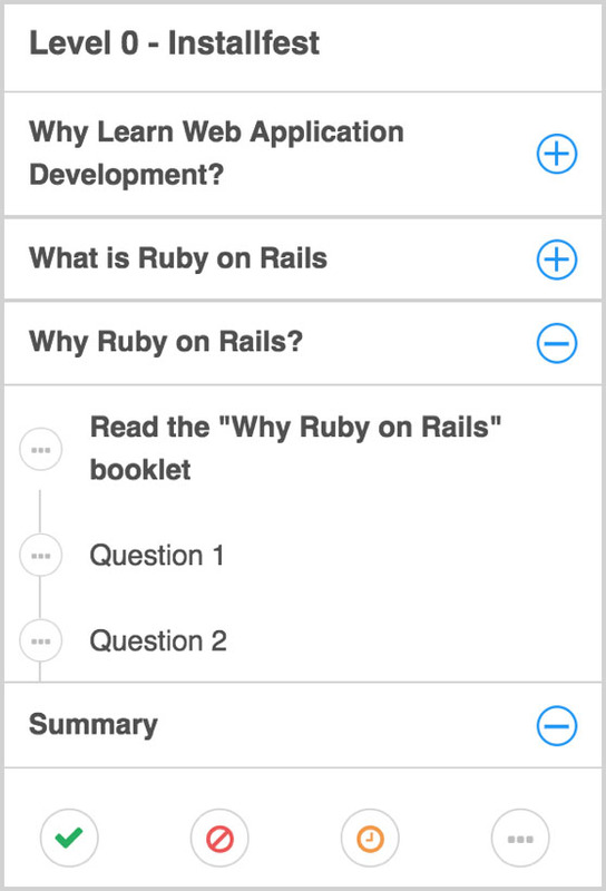 Level I takes you on a journey to get you to square zero on web application development. On this course you learn a bunch of jargon while building out the blog you made in the Installfest. By balancing theory with practical basics, you get a real world understanding of how these various parts fit together. This gives you a strong foundation to move onto real web application development.
